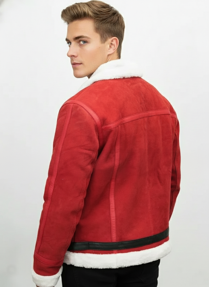 Men's Red Shearling Biker Jacket | Faux Fur Lined Winter Coat | Christmas Edition