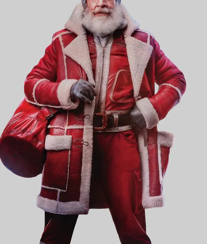 Premium Red Santa Shearling Style Coat | Festive Holiday Leather Jacket for Christmas