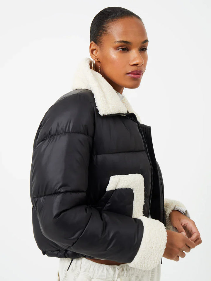 This Women Black Puffer jacket combines style and comfort. This lightweight piece features a quilted exterior, adjustable hood, and a full zip closure for a perfect fit. Its durable construction makes it ideal for enduring the cold in stylish warmth.