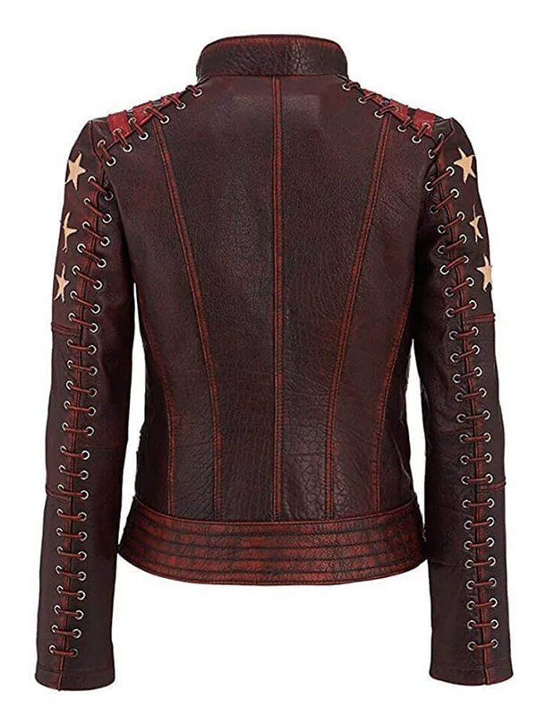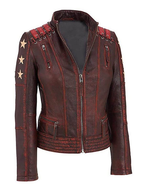 Buy Women's Stars and Stripes Brown Vintage Leather Jacket